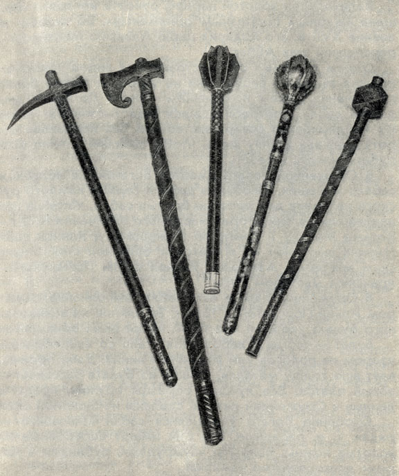 Клевец, топор, шестопер и две булавы. XVII век