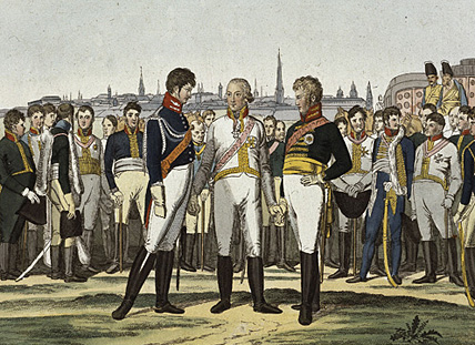 Франц I Австрийский, Император Александр I и Фридрих Вильгельм III Прусский встречаются в Праге 18 марта 1813 г.