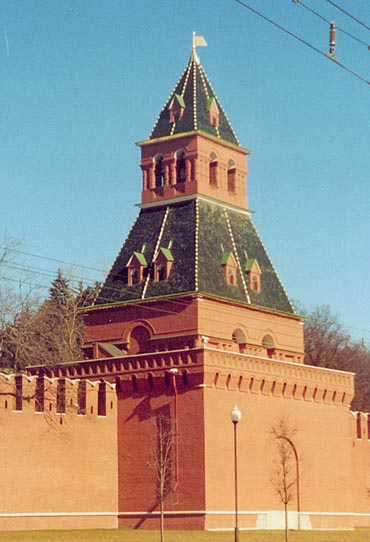 Тайницкая башня московского Кремля, современный вид. Апрель 2002 года