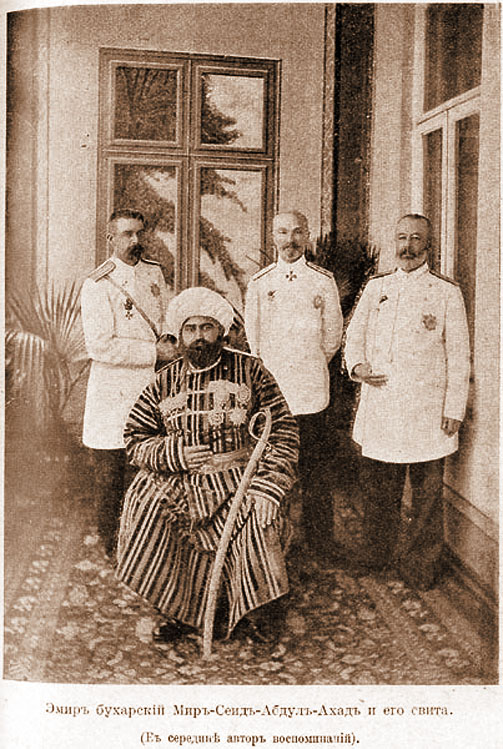 Портрет Эмира Бухарского Мир-Сеид-Абдул-Ахада в окружении русских офицеров.