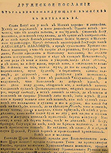 Дружеское послание от главнокомандующего в Москве к жителям ее