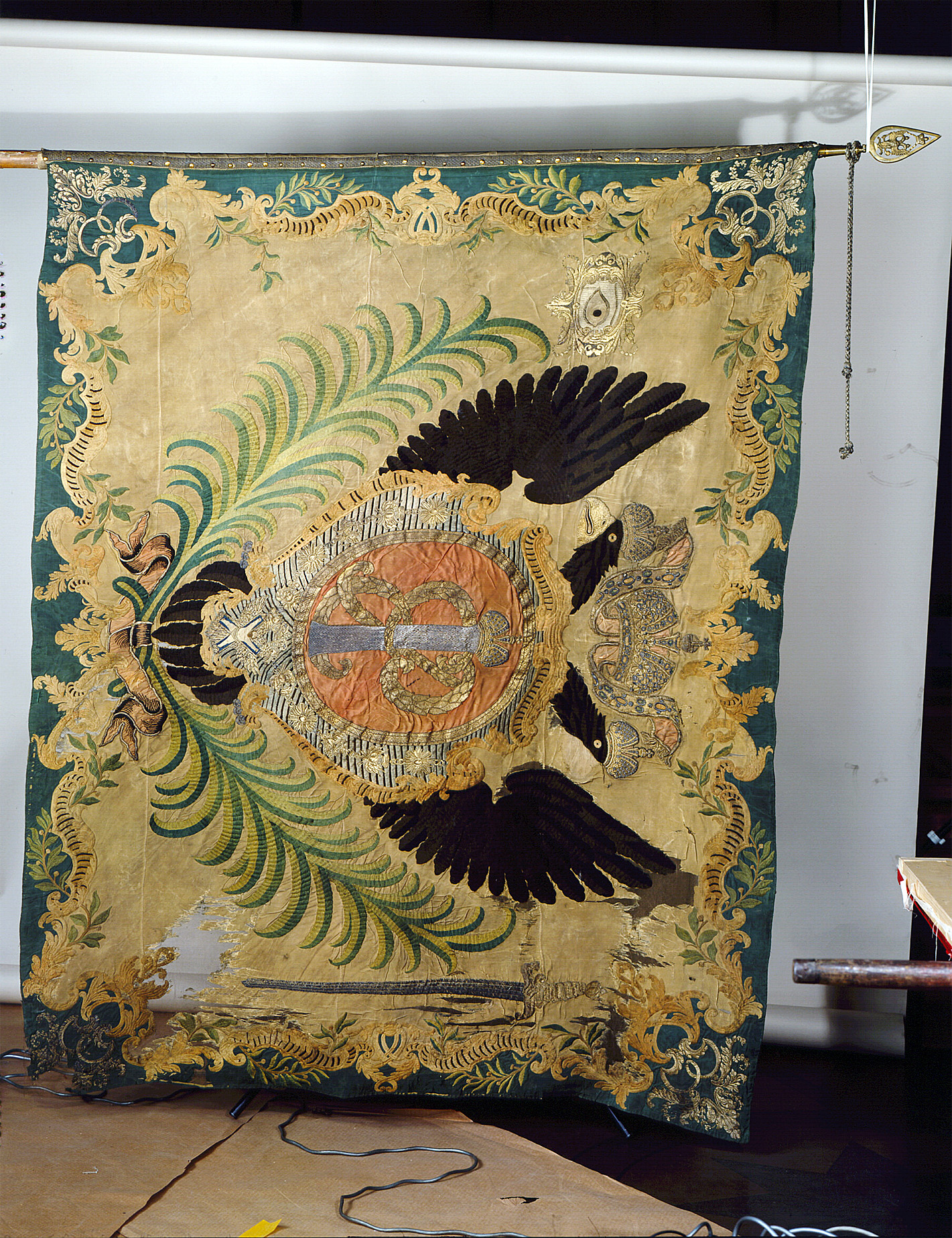 Полковое знамя Лейб-гвардии Преображенского полка. 1742. Государственный Эрмитаж. Фрагмент. Смотреть полностью.