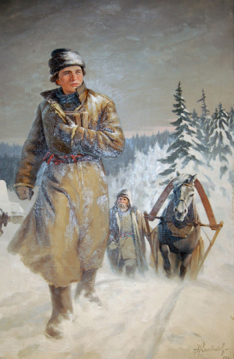«Юноша Ломоносов на пути в Москву» Художник: Кисляков Николай Иванович (1918 - 2004) холст, масло 1948 Музей М.В. Ломоносова Санкт-Петербург Фрагмент. Смотреть полностью.