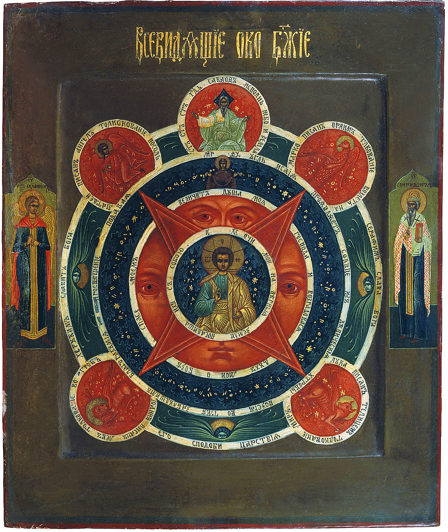 Икона «Всевидящее око Божие» Дерево, левкас, темпера XIX в. Государственный музей истории религии Санкт-Петербург Фрагмент. Смотреть полностью.