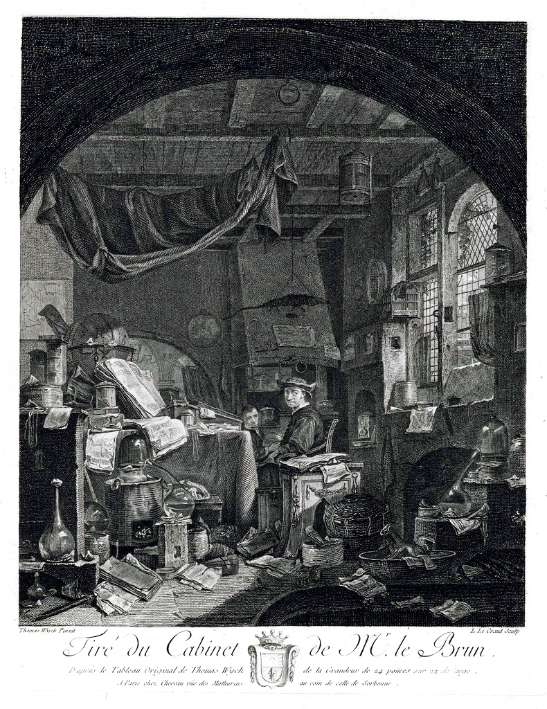 Кабинет господина Ле Брюна Гравюра Луи-Клода Ле Грана по картине Томайса Вийка Thomas Wyck (1616 – 1677) около 1700 г Фрагмент. Смотреть полностью.