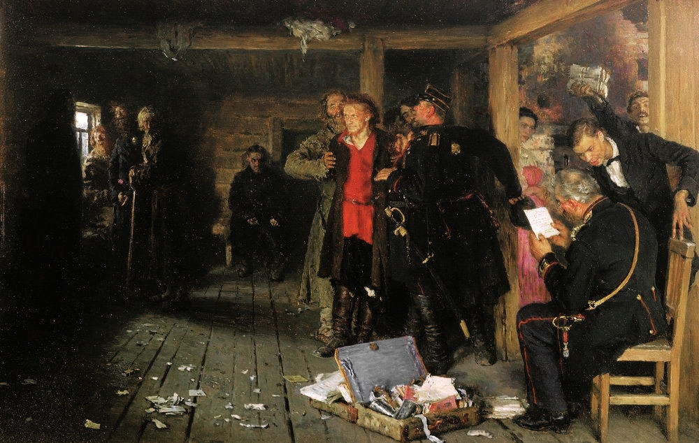 Арест пропагандиста. Художник: Репин Илья Ефимович (1844-1930) Государственная Третьяковская галерея Москва Холст, масло. 34,8 х 54,6 1880-1889, 1892 Фрагмент. Смотреть полностью.
