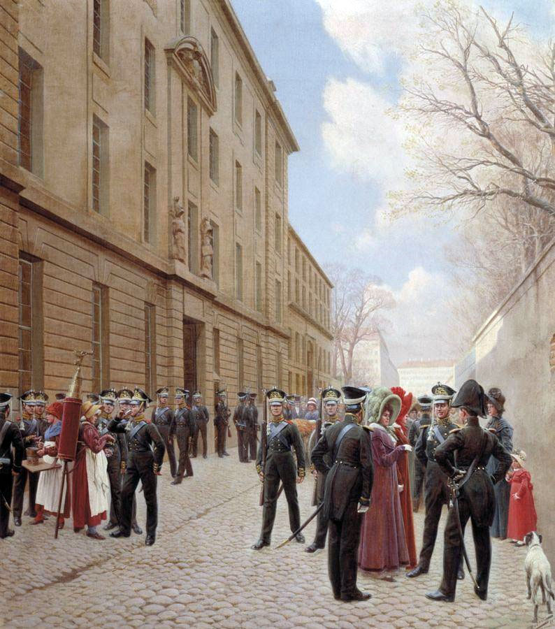 Гвардейский экипаж в Париже. 1814 год. Художник: Розен Иван Семенович (1857 - 1918) Холст, масло 1911 Центральный военно-морской музей Санкт-Петербург Фрагмент. Смотреть полностью.