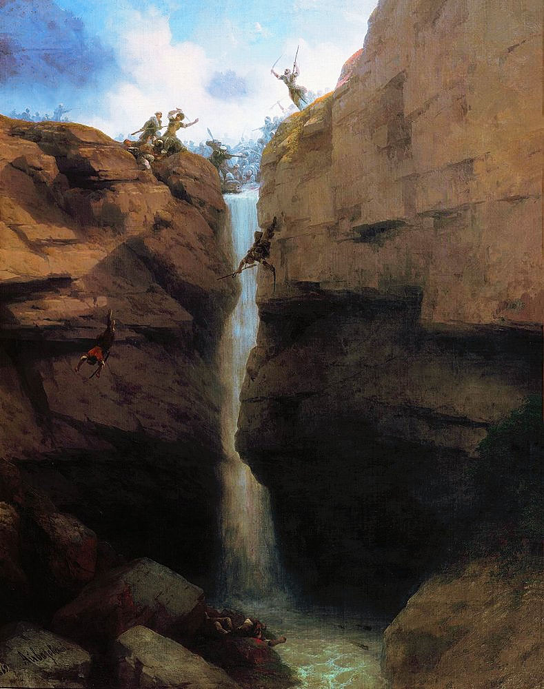 Стычка ширванцев с мюридами на Гунибе. Художник: Айвазовский Иван Константинович (1817–1900) 133х109,5 холст, масло 1869 Государственная Третьяковская галерея Москва Фрагмент. Смотреть полностью.