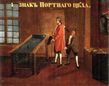 Знак Портного цеха Неизвестный художник последней четверти XVIII в. Холст, масло. 70,5х87,5 см Тверская областная картинная галерея Фрагмент. Смотреть полностью.