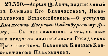О уступке Княжества Еверскаго Ольденбургскому дому.