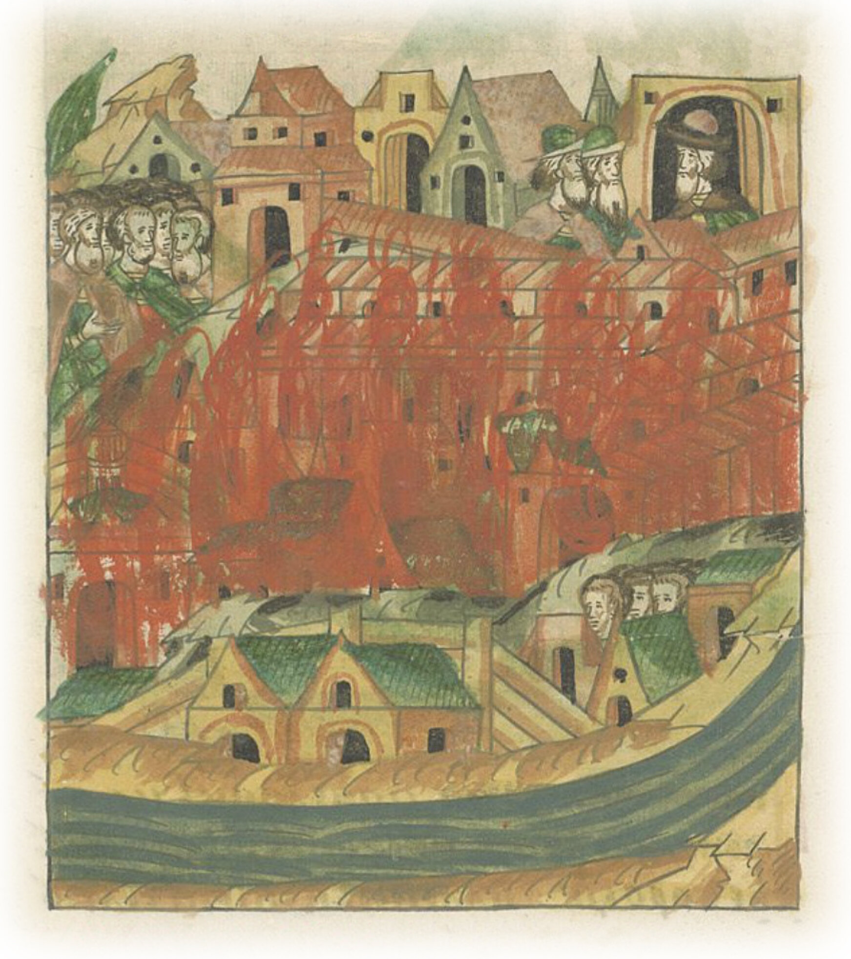 О пожаре. В ту же весну (месяца) мая в 21 день в воскресенье за час до вечера загорелось на Большом посаде, посад и торг выгорел от Панского двора до реки Неглинной, до пушечной избы и едва не дошел до церкви Сретения.
