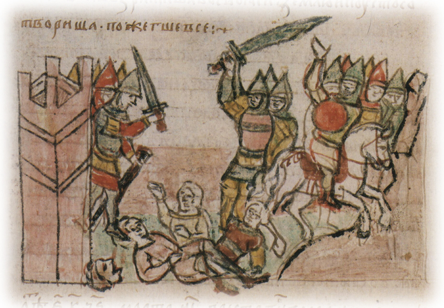 Сражение черниговского пешего ополчения с дружиной Андрея Юрьевича Владимирского и половцами под стенами города.
