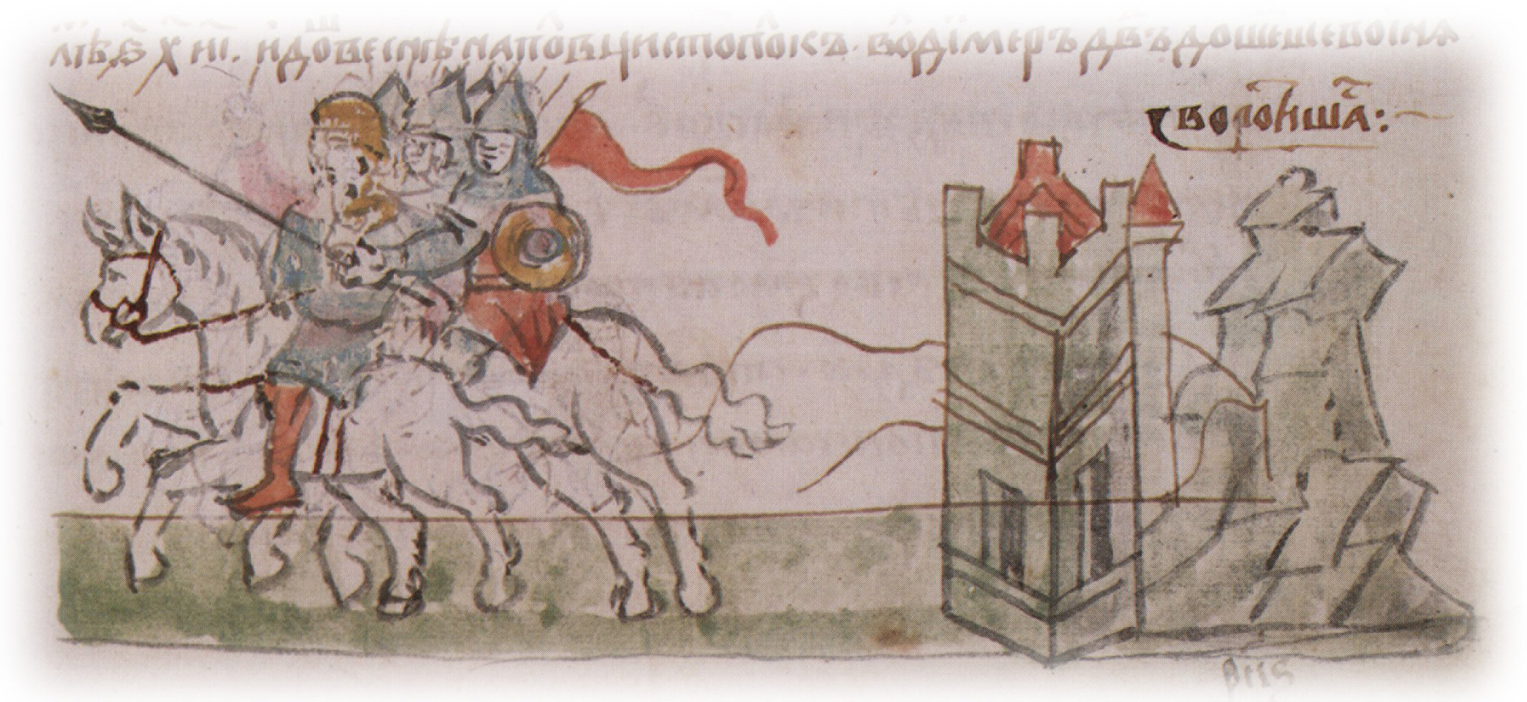 В лето 6618. Идоша весне на половци Святополк, Володимер, Давыд. Дошедше Воиня, воротишася".