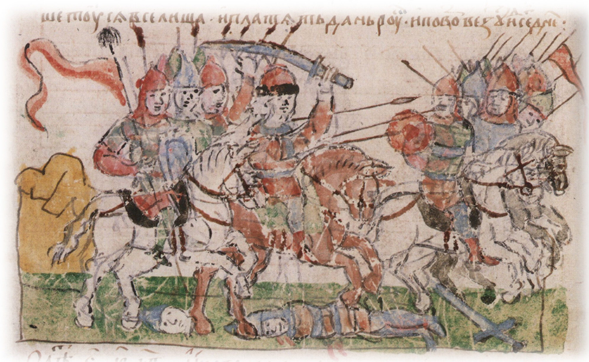 "В лето 6492. Иде Володимер на радимичи. И бе у него воевода Волчей Хвост. И посла Володимер пред собою Волчьа Хвоста. И срете на реце Песндане, и победи радимичи Волчей Хвост".