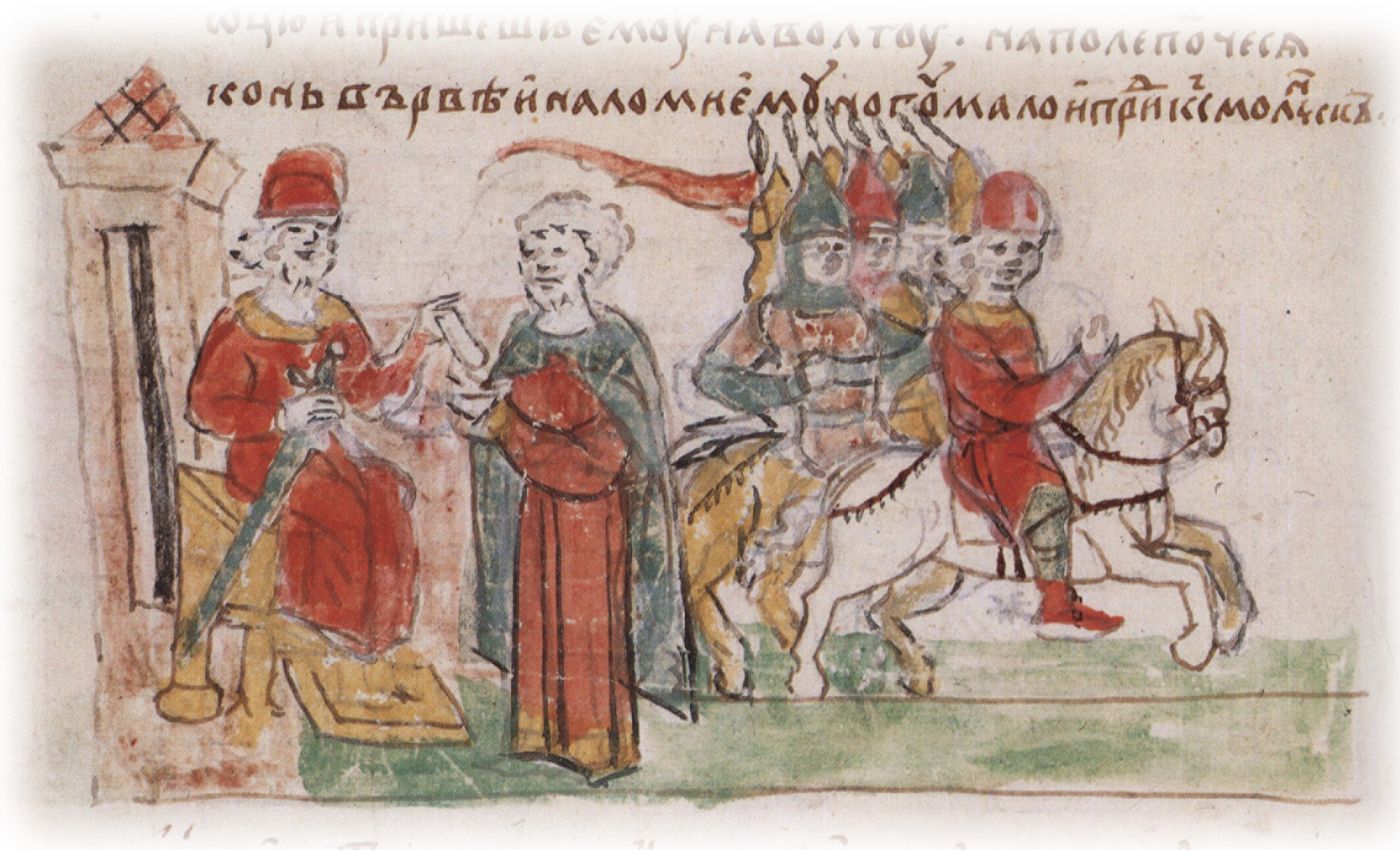 Кондаков Н. П. О миниатюрах Кенигсберского списка начальной летописи // Радзивиловская, или Кенигсбергская, летопись. СПб., 1902. Т. 2. Статьи о тексте и миниатюрах летописи. с. 123; Подобедова О. И. Миниатюры русских исторических рукописей. К истории русского лицевого летописания. М., 1965. с. 71, 88