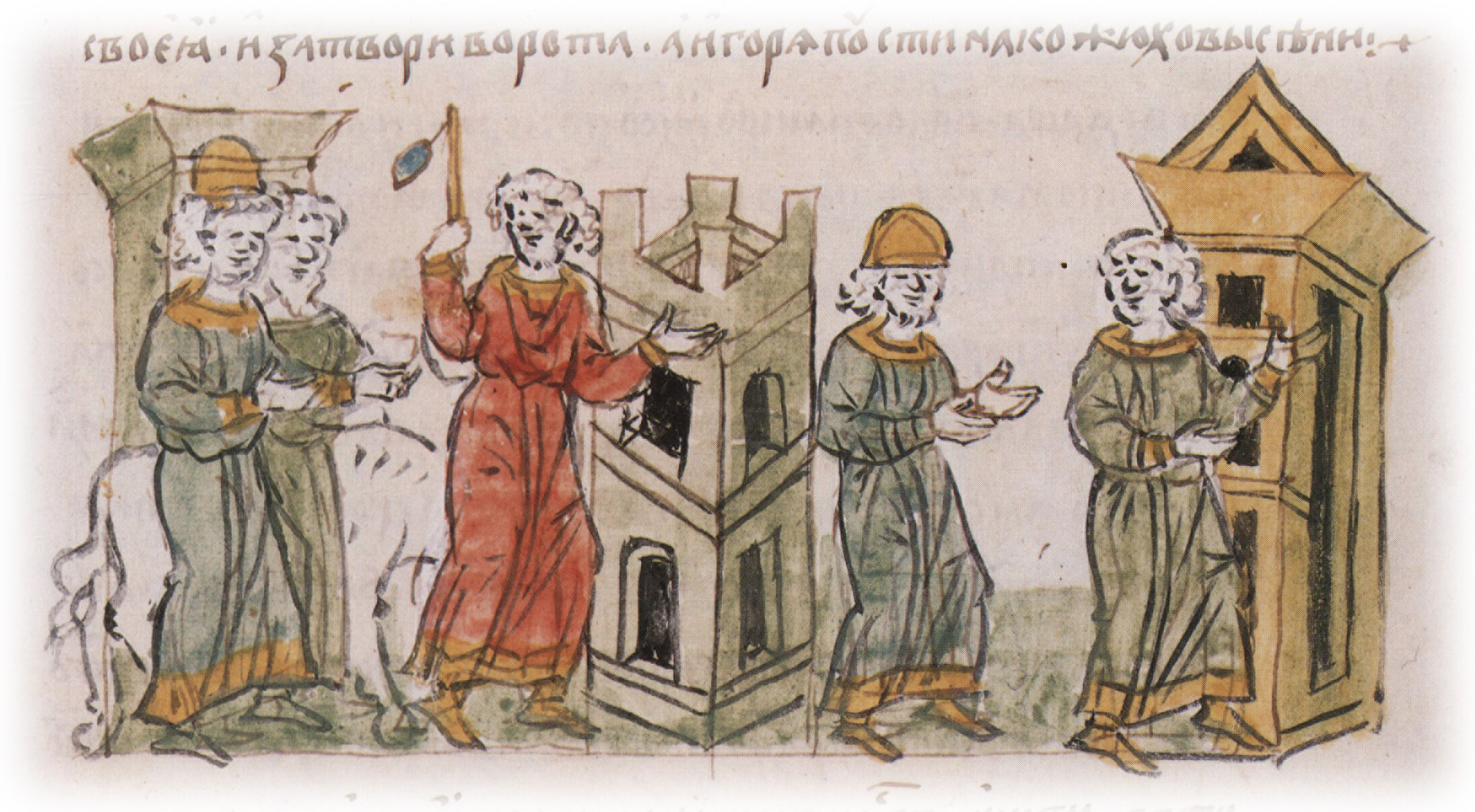 Варка киселя из болтушки и сыты в Белгороде в присутствии печенегов, пришедших с корчагами; испробование печенежскими князьями приготовленных кушаний, наличие которых в осажденном городе привело врагов в изумление и заставило снять осаду города.