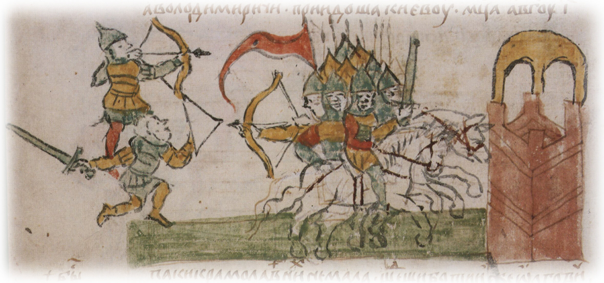 Сражение черниговского пешего ополчения с дружиной Андрея Юрьевича Владимирского и половцами под стенами города.
