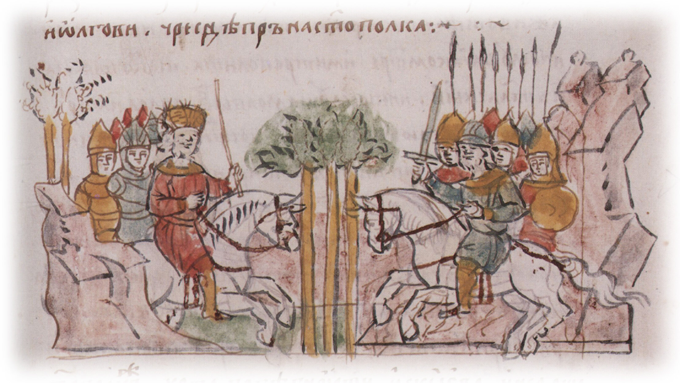 "...Давыд и Олег, печална быста... И собравше воя, и приидоста к Володимиру. Володимиру сущу с вой, стоящу в бору".