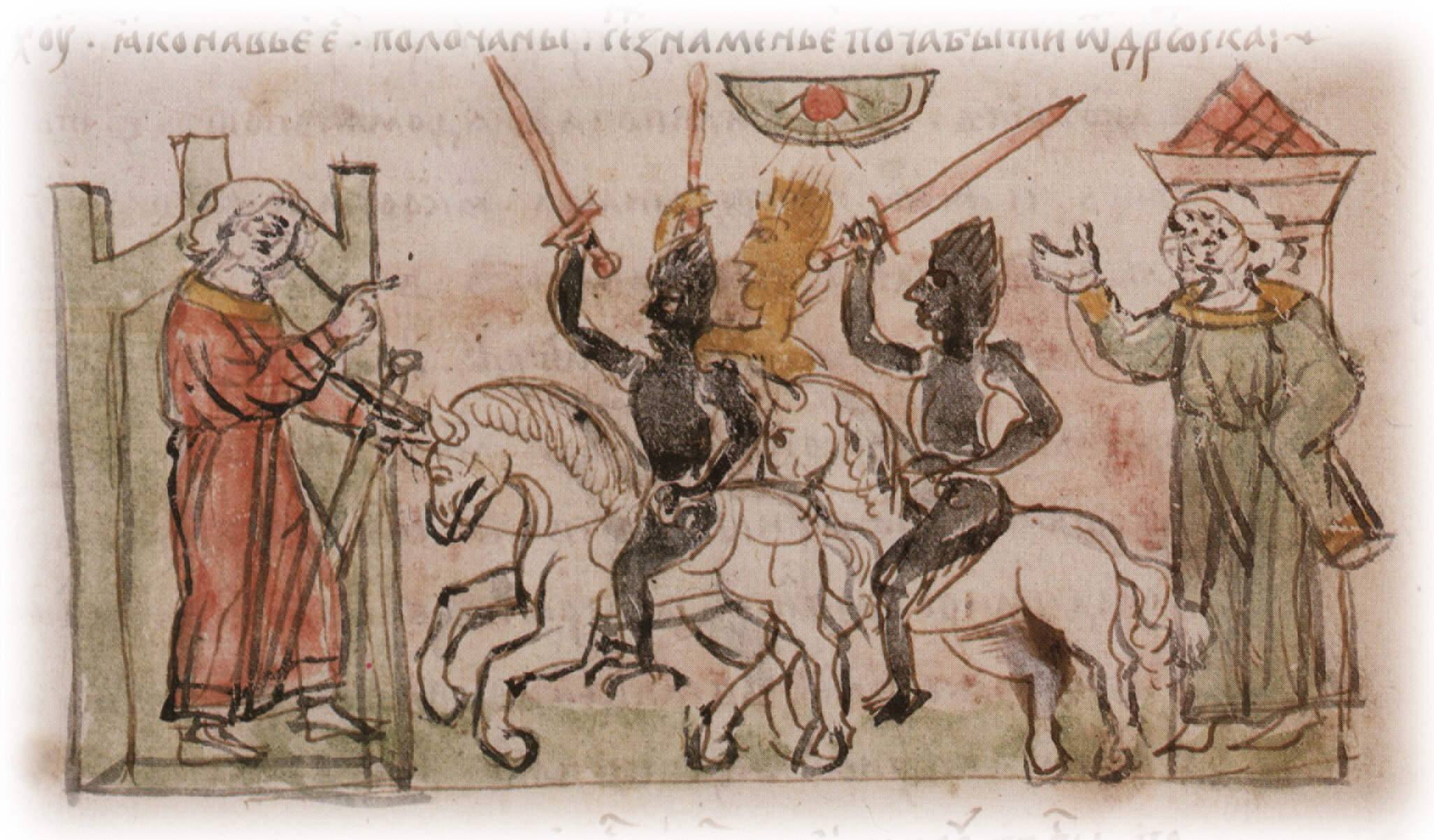 "По сем же начаша в день являтися на конех, и не бе их видети самех, но коней их видети копыта; и тако уязвляху людие полоцкиа и их область".