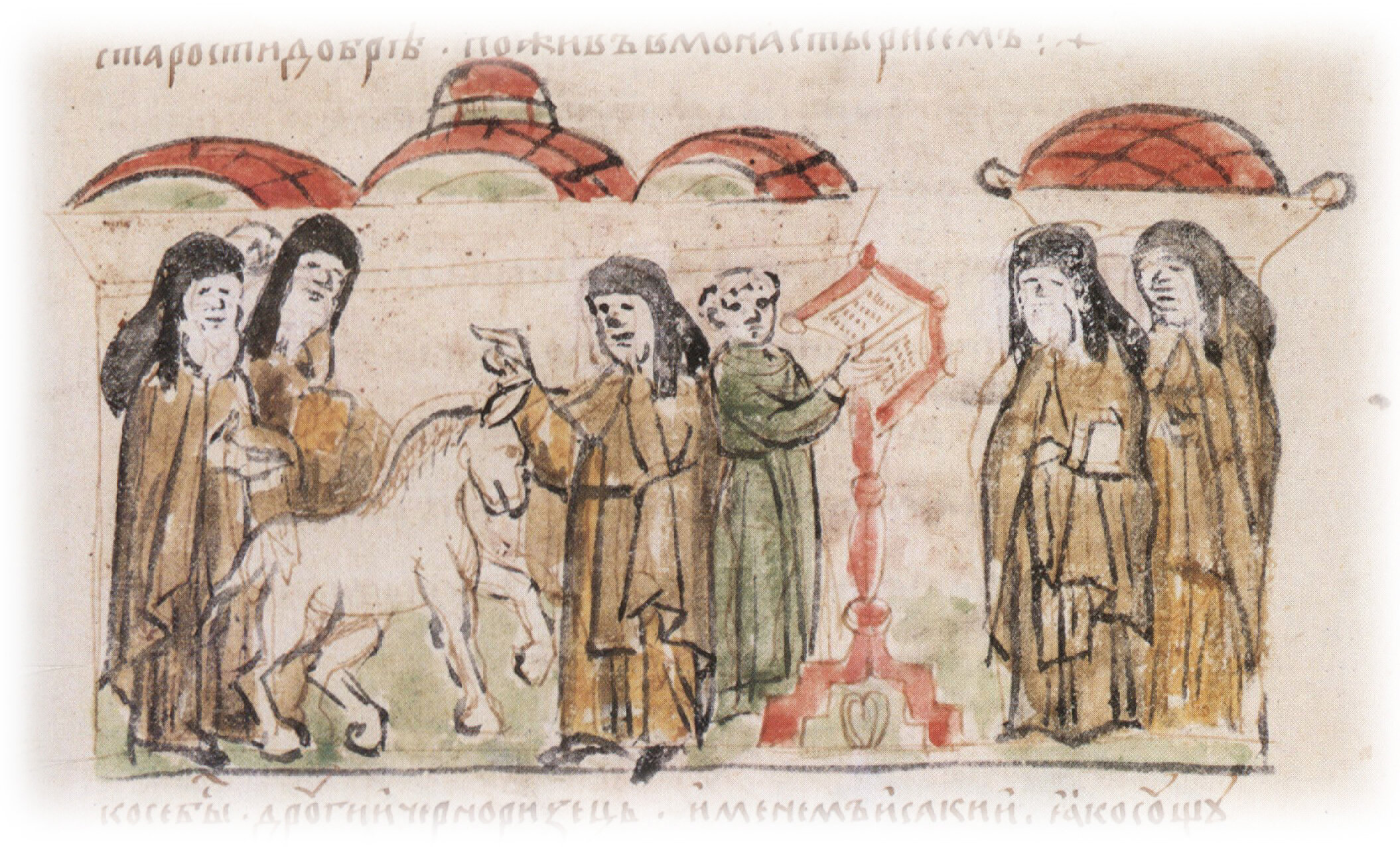"И сему же старцю стоящю на утрени, возведе очи свои, хотя видети игумена Никона, и виде осла стояща на игумени месте, и разуме, яко не восталъ есть игуменъ".