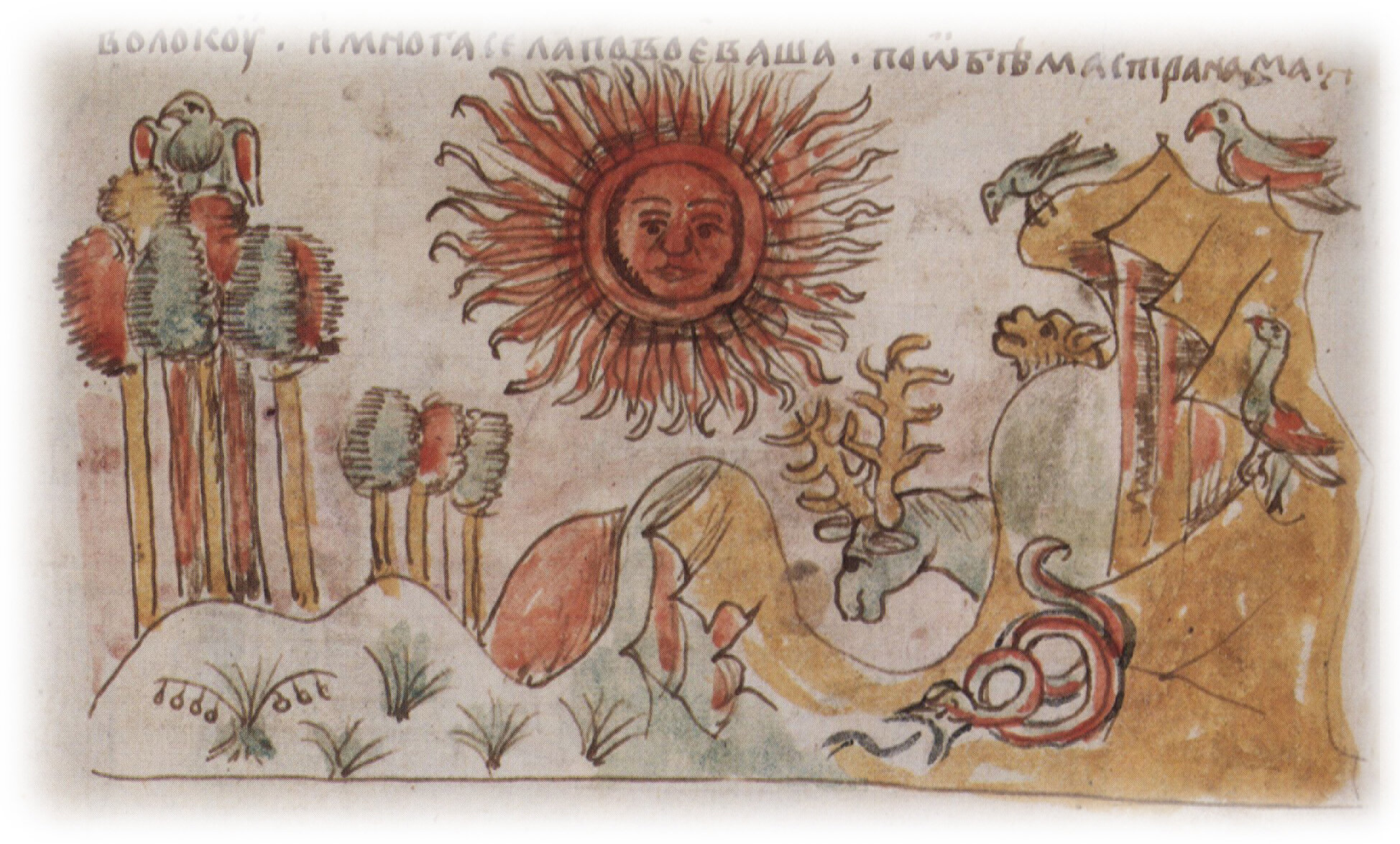 "В си же времена знамение бысть в небеси, яко круг бысть посреде неба превелик. В се же лето ведро бяше, яко изгараша земля, и мнози борове возгараху сами и болота".
