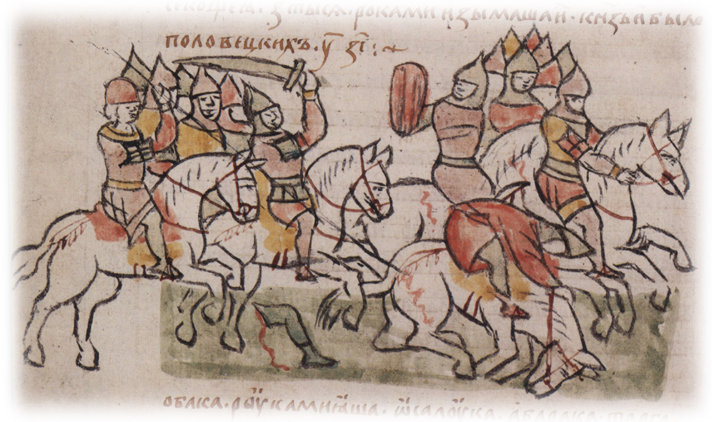 "Половци же, узревше Володимиръ полк, крепко идуще на них, побегоша, гоними гневом Божьим и Святое Богородици. Наши же погнаша, секуще я...".