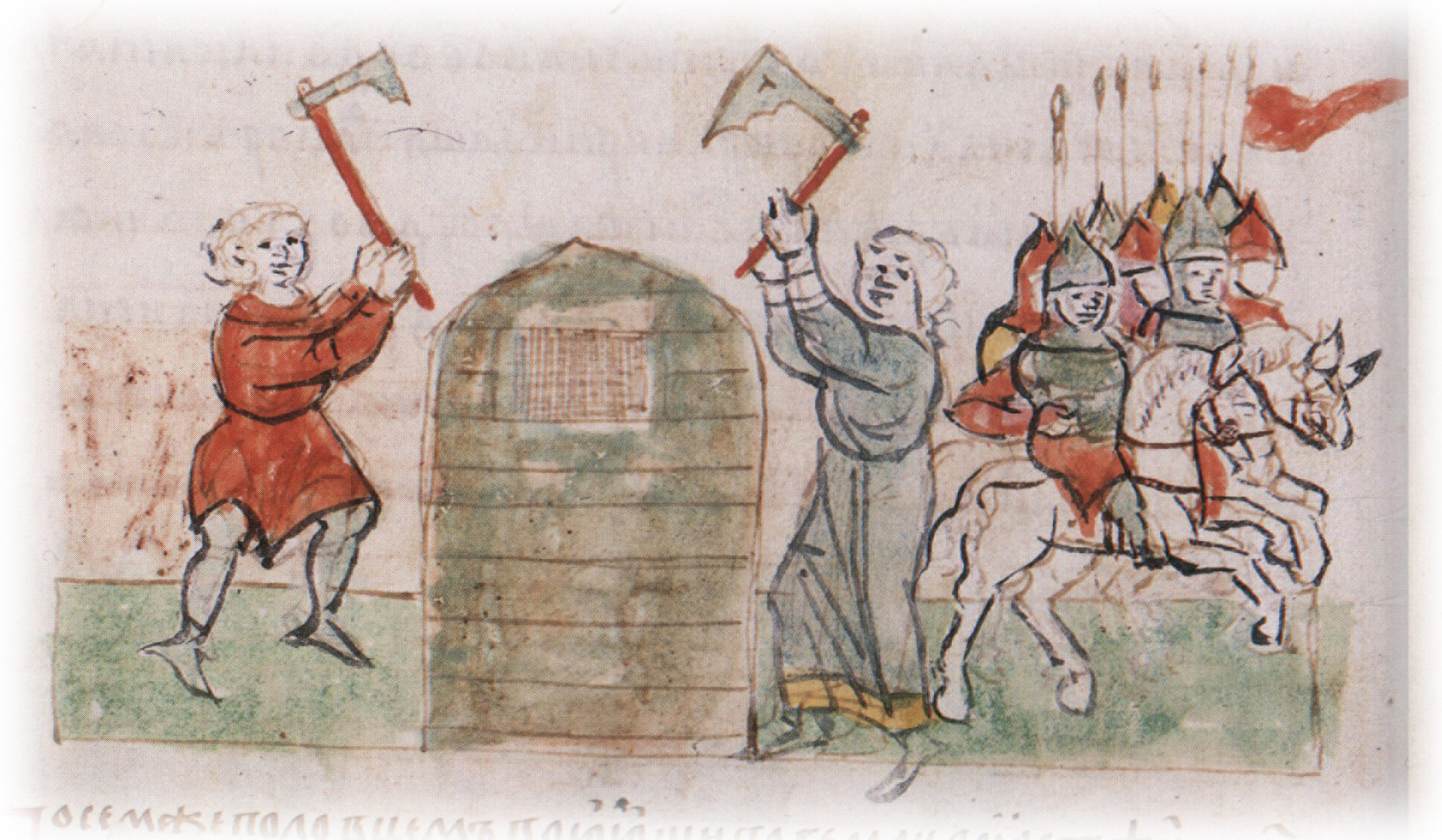 Сизов В. И. Миниатюры Кенигсбергской летописи // ИОРЯС. СПб., 1905. Т. 10. Кн. 1. с. 43; Арциховский А. В. Древнерусские миниатюры как исторический источник. М./1944. с. 9, 10, 23; “Повесть временных лет”. Подг. текста Д. С. Лихачева. Пер. Д. С. Лихачева и Б. А. Романова. М.; Л., 1950 (серия “Литературные памятники”). вкл. кс. 128; Рыбаков Б. А. “Слово о полку Игореве” и его современники. М., 1971. V с. 206.
