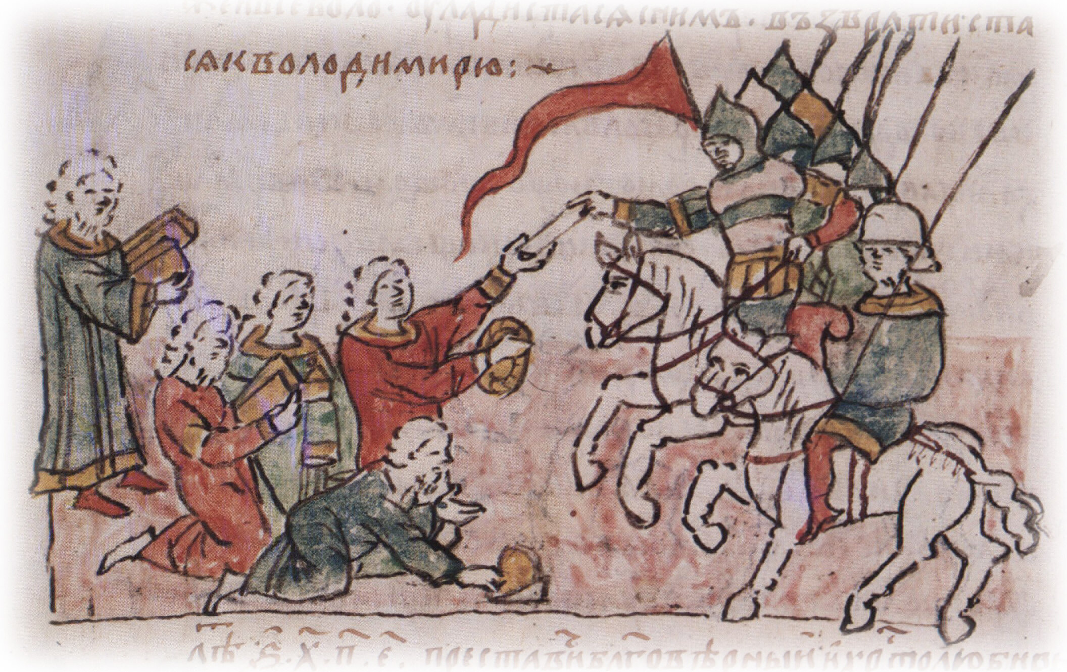 Встреча Михалка Юрьевича Владимирского с послами Глеба Ростиславича Рязанского в Москве и возвращение церковного имущества, награбленного во Владимире во время междукняжеской усобицы.
