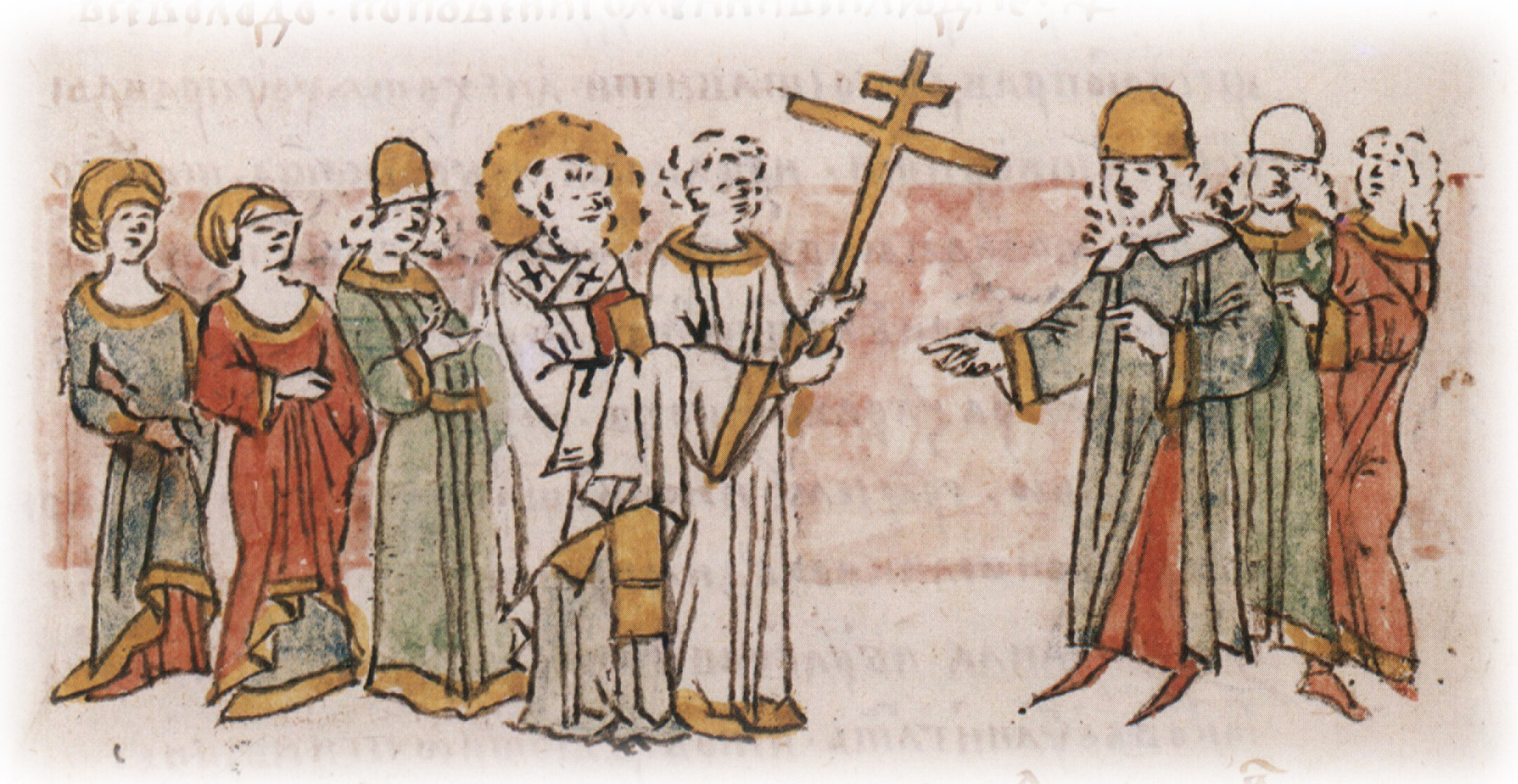 "Выидоша со кресты противу Михалку и брату его Всеволоду Попове и игумени и вси людие".