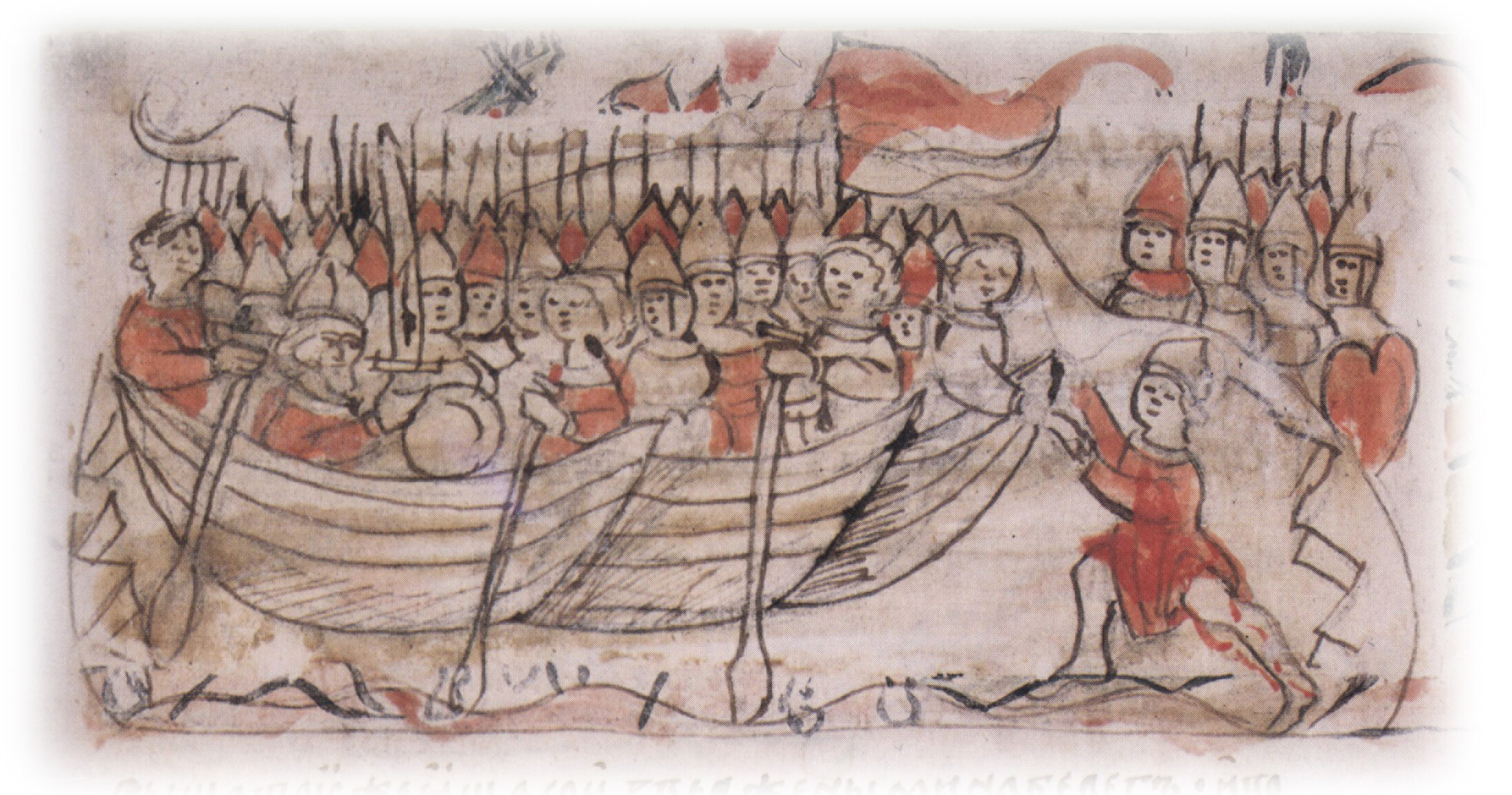 Поход Владимира Ярославича Новгородского в ладьях на Царьград; гибель кораблей в бурю и спасение Владимира на ладье воеводы Ивана Творимича.