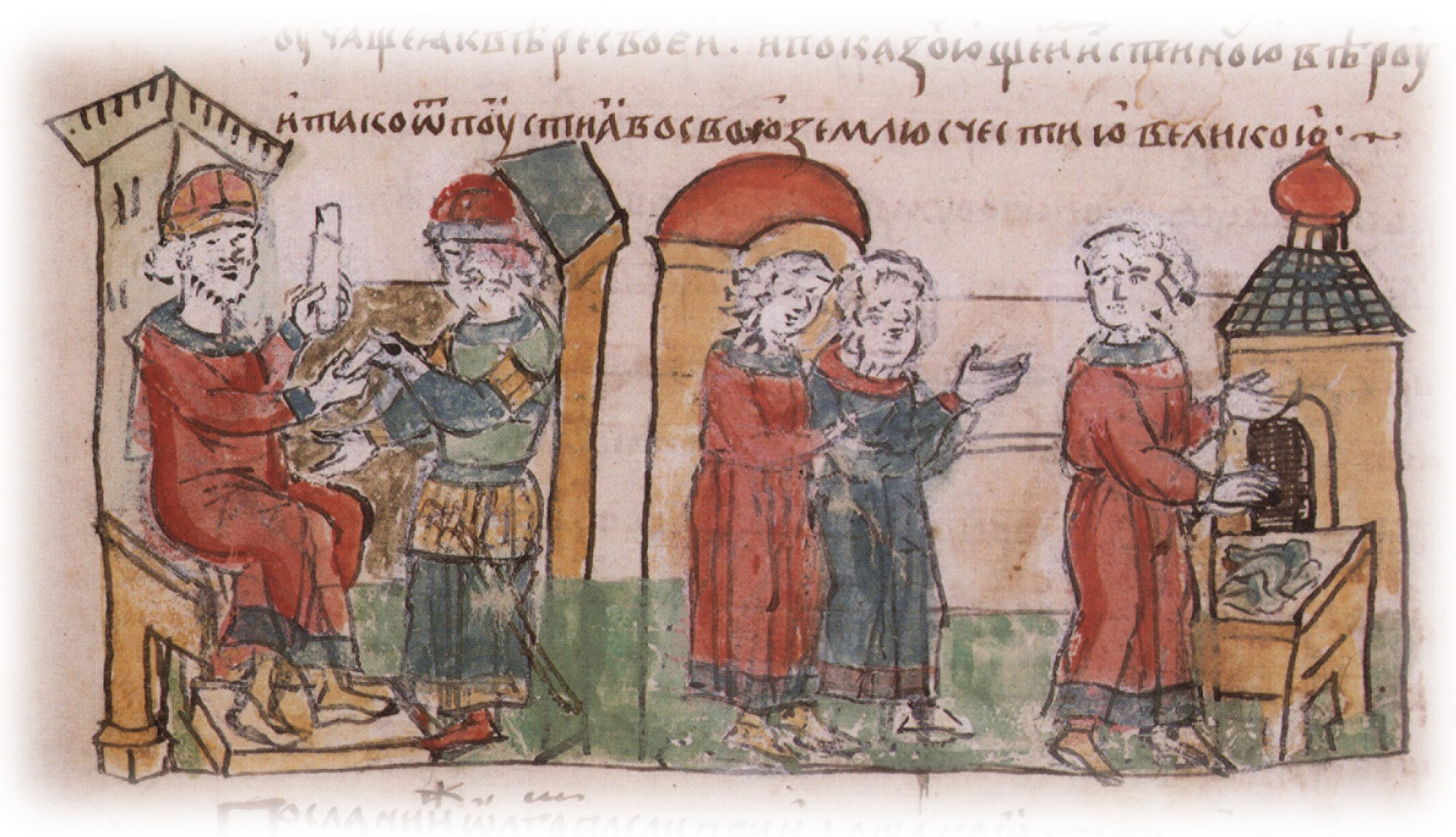 Подобедова О. И. Миниатюры русских исторических рукописей. К истории русского лицевого летописания. М., 1965. с. 62, 88; Рыбаков Б. А. “Слово о полку Игореве” и его современники. М., 1971. V с. 199.
