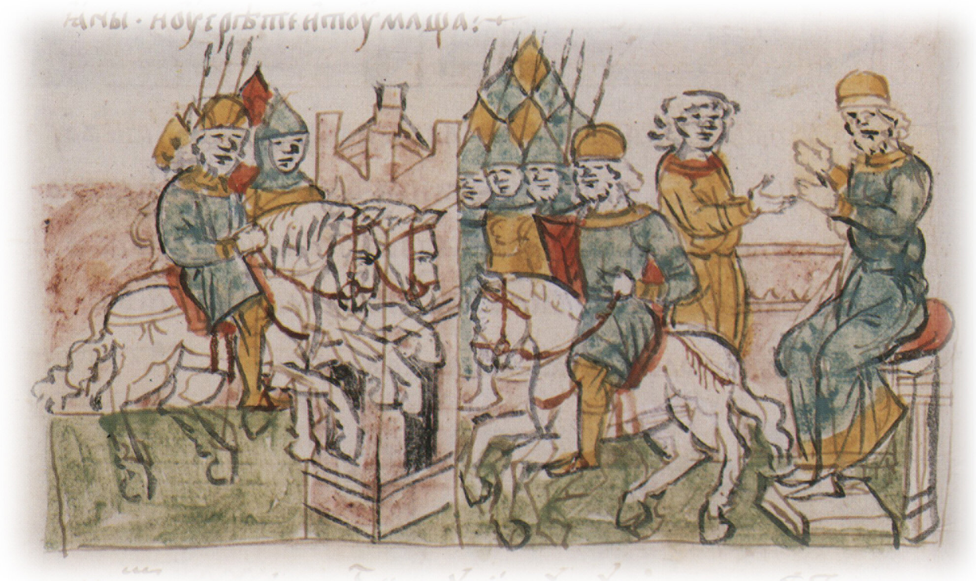"Изяслав же, слышав то, посла сыну своему Мстиславу, река: "Идет на мя Володимерко..."... Изяслав же поеха противу Володимирку... и усрете и Тумаща".