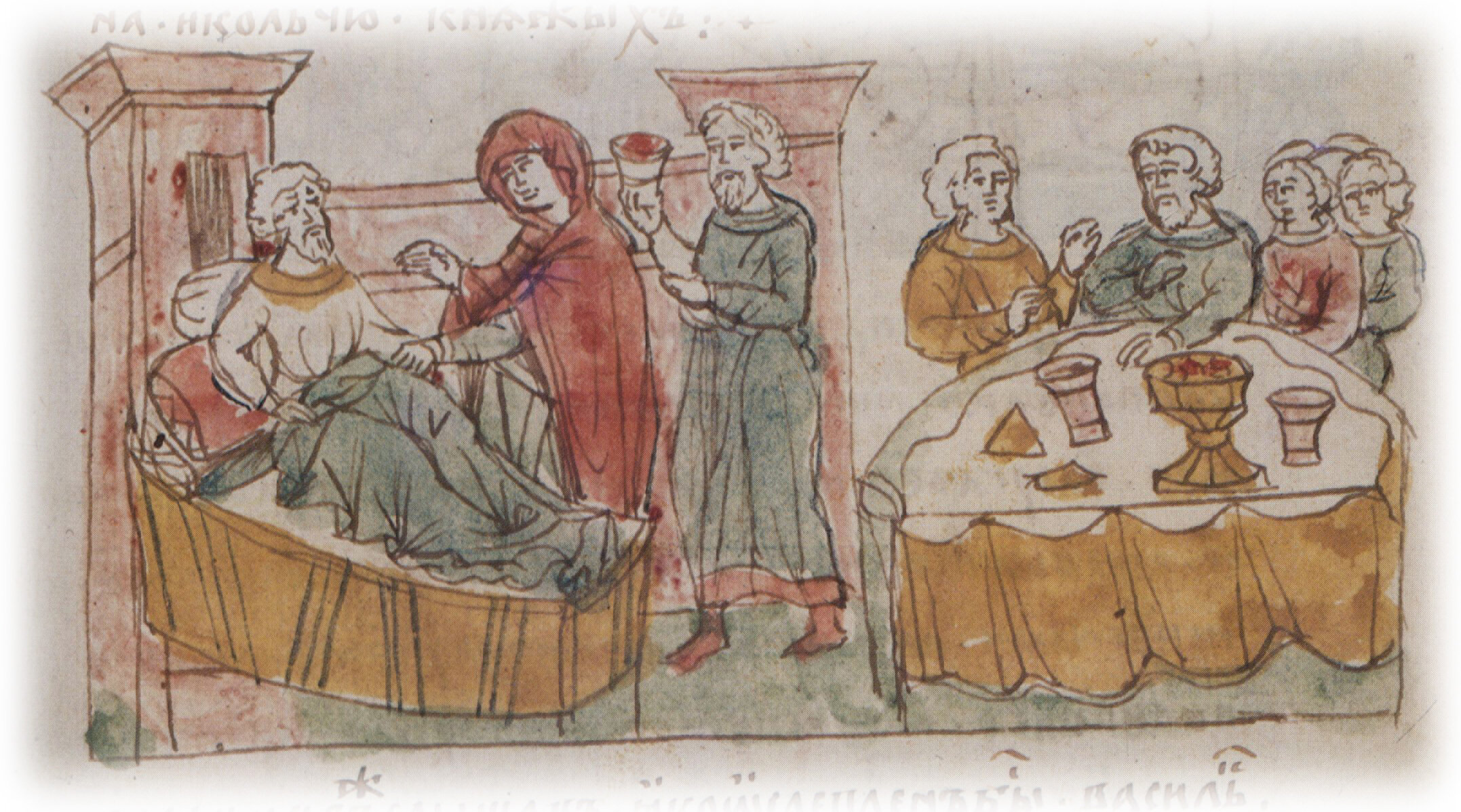 Возвращение сознания к Васильку Ростиславичу Теребовльскому в Звиждене; обед в Звиждсне