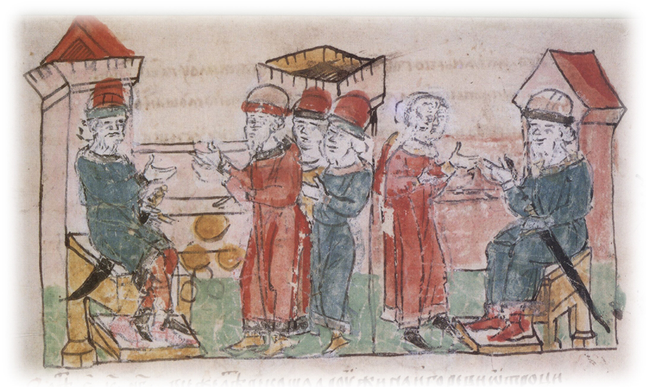 Варка киселя из болтушки и сыты в Белгороде в присутствии печенегов, пришедших с корчагами; испробование печенежскими князьями приготовленных кушаний, наличие которых в осажденном городе привело врагов в изумление и заставило снять осаду города.