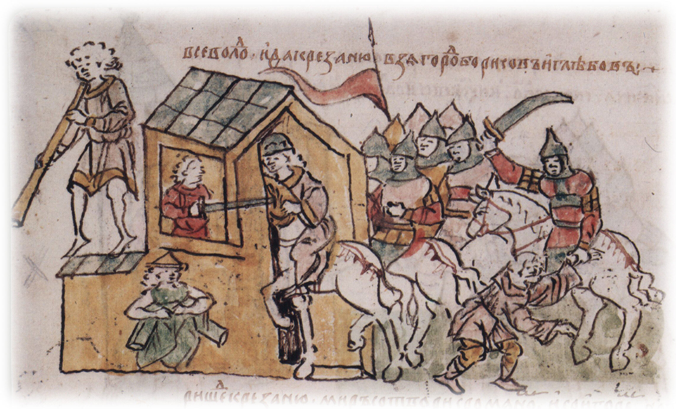 Подобедова О. И. Миниатюры русских исторических рукописей. К истории русского лицевого летописания. М., 1965. с. 69, 72; Рыбаков Б. А. “Слово о полку Игореве” и его современники. М., 1971. V с. 217.