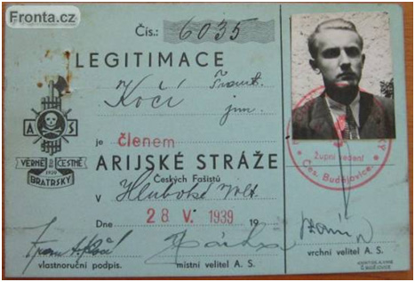 Членский билет «Арийской гвардии – Чешских фашистов», 1939 г.
