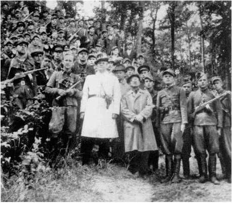 Генерал Михал Жимерский (в светлом плаще) с бойцами Армии Людовой. 1944 г.