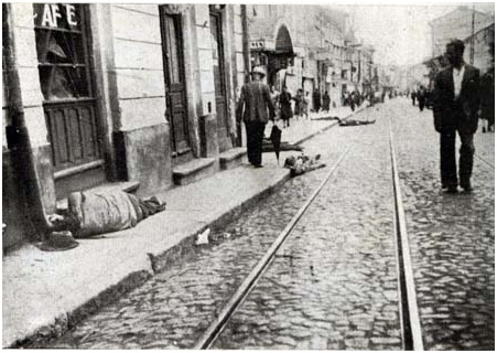 Жертвы погромщиков на улицах Бухареста. Сентябрь 1940 г.