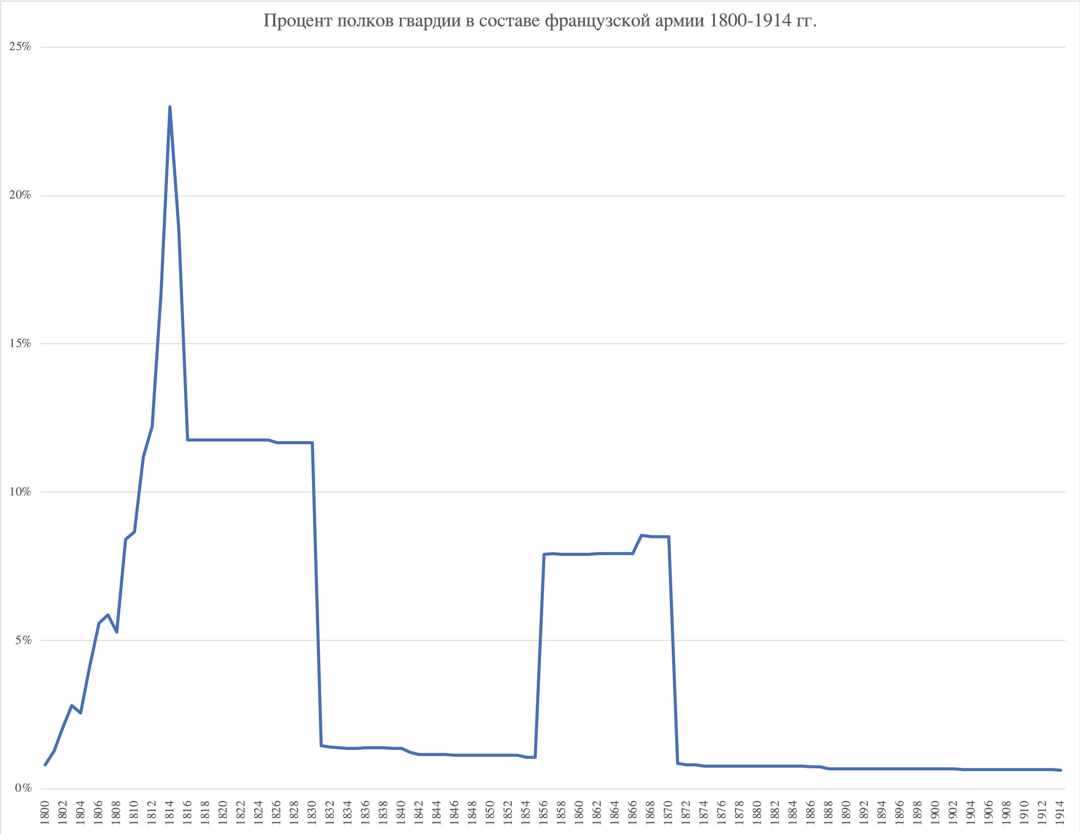 Процент гвардейских полков в составе французской армии 1800–1914 гг.