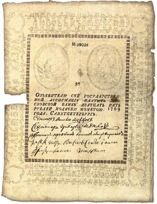Ассигнация достоинством в 25 рублей выпуска 1769 года