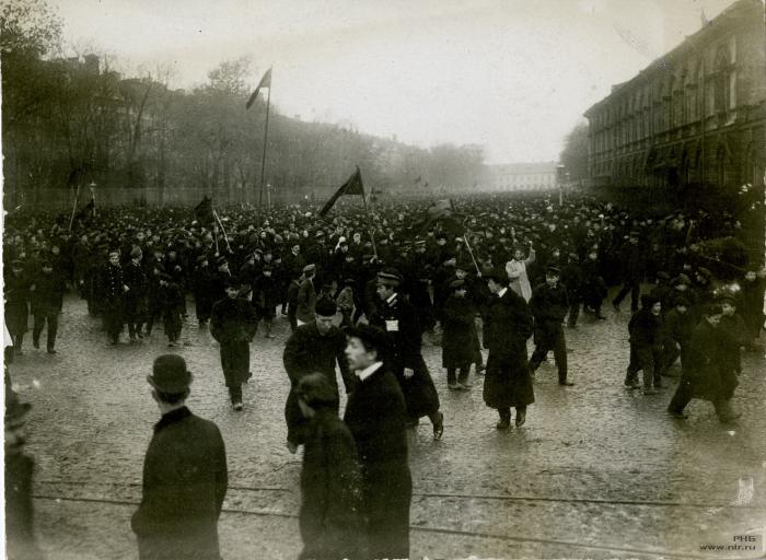 Студенческая демонстрация около Университета в Санкт-Петербурге.