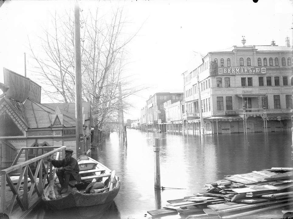 Нижегородская ярмарка во время половодья. Вид на Театральную площадь. Нижний Новгород.