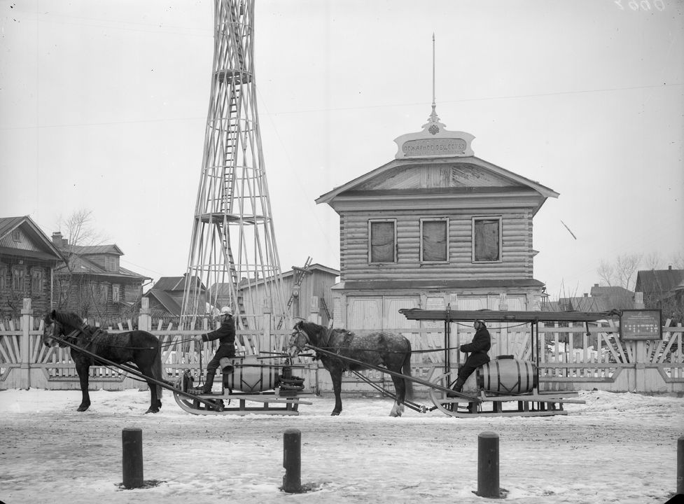 Сормово. Сормовская вольно-пожарная дружина. Зимний ход Сормовского пожарного общества. Автор: М.П. Дмитриев Место события: г. Н.Новгород Дата: 1915 г.