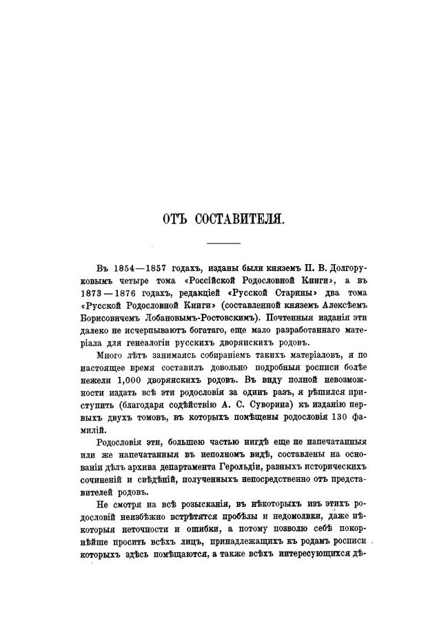 Большинство родословных, представленных в сборнике, нигде до момента выпуска не публиковались. Данные для книги были составлены на основании дел архива департамента Герольдии, а также разных исторических источников и сведений, полученных авторами непосредственно от представителей родов. Основные данные были собраны Витольдом Владиславовичем Руммелем, меньшая часть — списки семи фамилий (графы Васильевы, Галаховы, Голубцовы, Огаревы, Скобельцыны, Шиловские, Юшковы) — Владимиром Владимировичем Голубцовым.