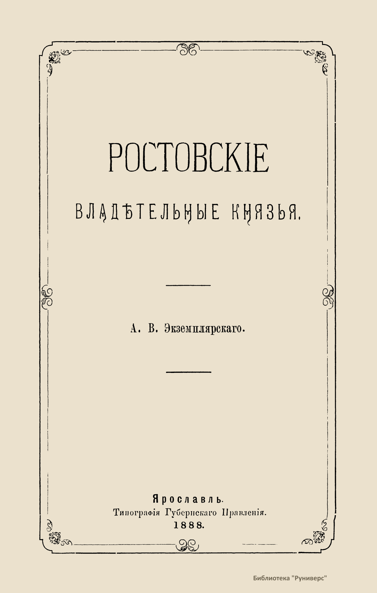Исследование знаменитого специалиста по древней генеалогии о владетельных князьях Ростова Великого, с подробными биографиями оных.