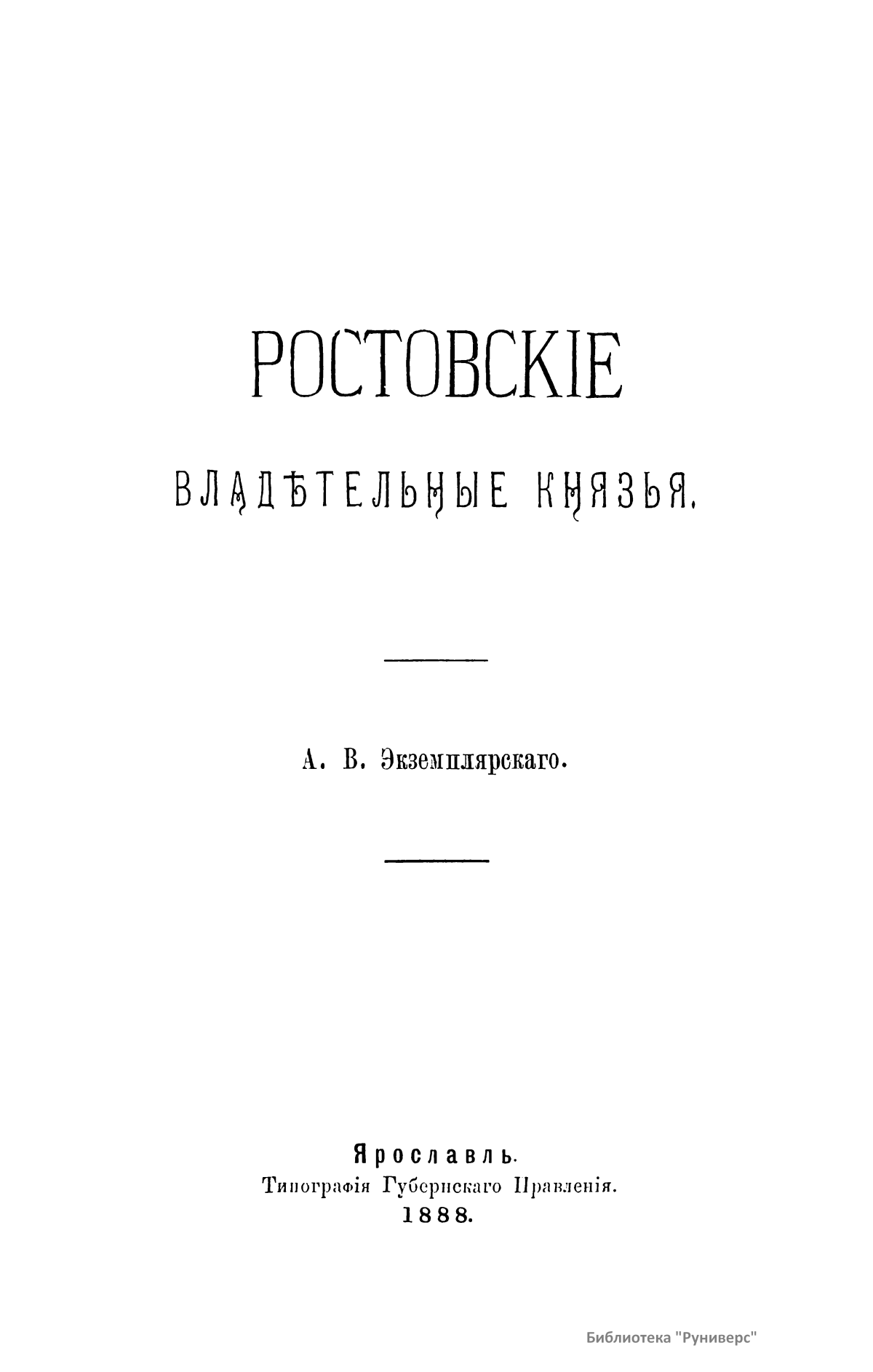 Исследование знаменитого специалиста по древней генеалогии о владетельных князьях Ростова Великого, с подробными биографиями оных.