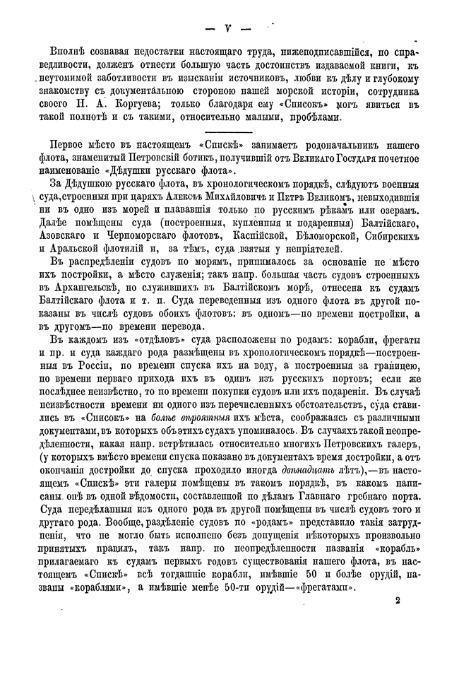 Для составления настоящего «Списка» источниками послужили все напечатанные до него списки военных судов русского флота, а также многие печатные и, особенно, архивные материалы. Все собранные данные проверены, разобраны и оценены по степени верности заключающейся в них информации.
