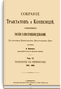 Собрание Трактатов и Конвенций, заключенных Россией с иностранными державами. Том VI. Трактаты с Германией.