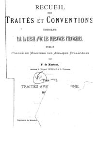 «Собрание Трактатов и Конвенций, заключенных Россией с иностранными державами» — публикация документов дипломатической истории России XVII-XX вв., изданная в 15 томах в 1874-1909 Ф. Ф. Мартенсом. «Собрание» включает документы о взаимоотношениях России с Австрией (и Австро-Венгрией) — т. 1-4; с Пруссией (Германией) — т. 5-8; с Англией — т. 9-12; с Францией — т. 13-15. Все документы воспроизведены на языке подлинника и даны в русском переводе. Каждому тому предпослано введение, многие тексты договоров снабжены комментариями. Собрание Мартенса являлось наиболее полной публикацией такого рода, многие соглашения и секретные статьи к ним были воспроизведены впервые.