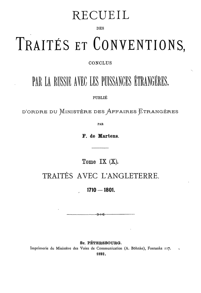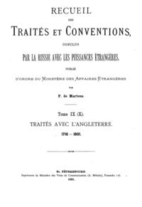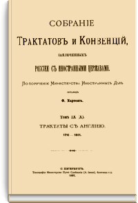 Собрание Трактатов и Конвенций, заключенных Россией с иностранными державами. Том IX (X). Трактаты с Англией.